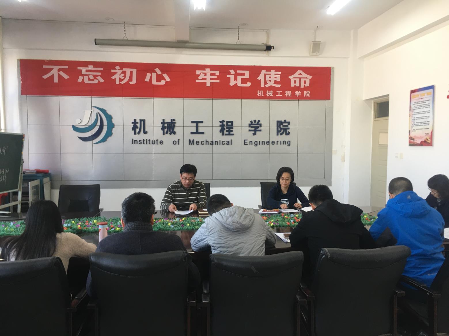 会上就学校《关于进一步做好党支部“不忘初心、牢记使命”主题教育的通知》和《关于党费、发展党员和党的组织生活调研督查情况的通报》文件内容进行了学习传达和安排部署。会议指出,要严格按照相关要求,结合“两学一做”学习教育常态化制度化,依托“三会一课”、主题党日等,把学习教育、检视问题、整改落实贯穿主题教育全过程,同时采取生动鲜活、喜闻乐见的方式,增强主题教育的吸引力和感染力。会议要求各支部对照学校组织部的调研督查报告,全面审视本支部在党费、发展党员和党的组织生活方面存在的问题,切实提高思想认识,提升基层党组织组织生活制度化、规范化水平。