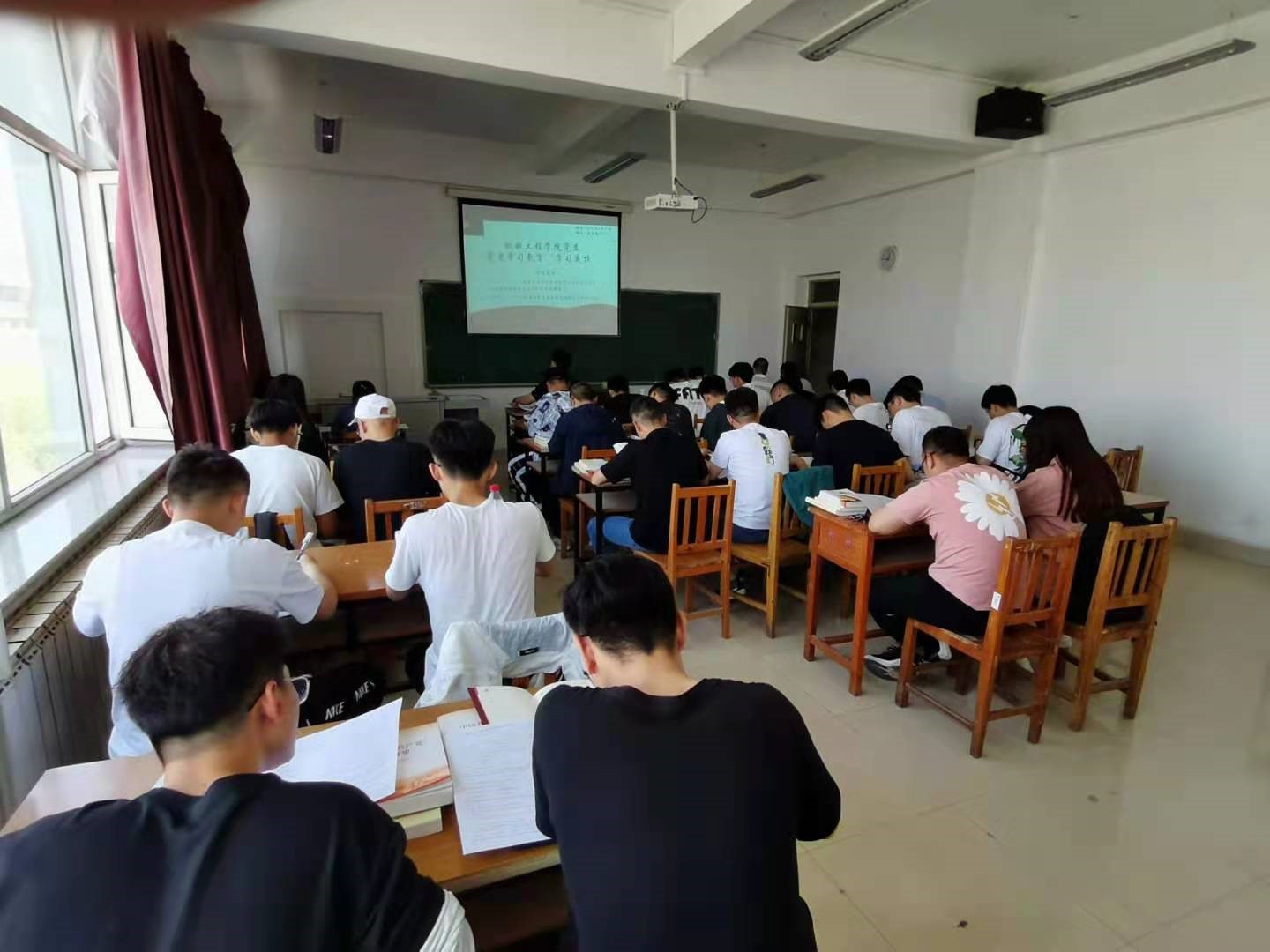 5月20日,公司党委组织进行第一次集中自学,学院合理进行时间安排,教工党员50余人在腾飞楼C304教室分批进行集中学习,员工党员120余人在主教学楼F207教室集中进行夜校学习,各位党员佩带党徽、及时到场,首先使用四本必读书目集中自学社会主义革命和建设时期历史及改革开放时期历史,然后开展新民主主义革命时期历史知识测试。自学期间党员们专心致志,做好学习笔记,严守学习纪律,测试答题过程中大家奋笔疾书,通过测试巩固对新民主主义革命时期历史的学习。