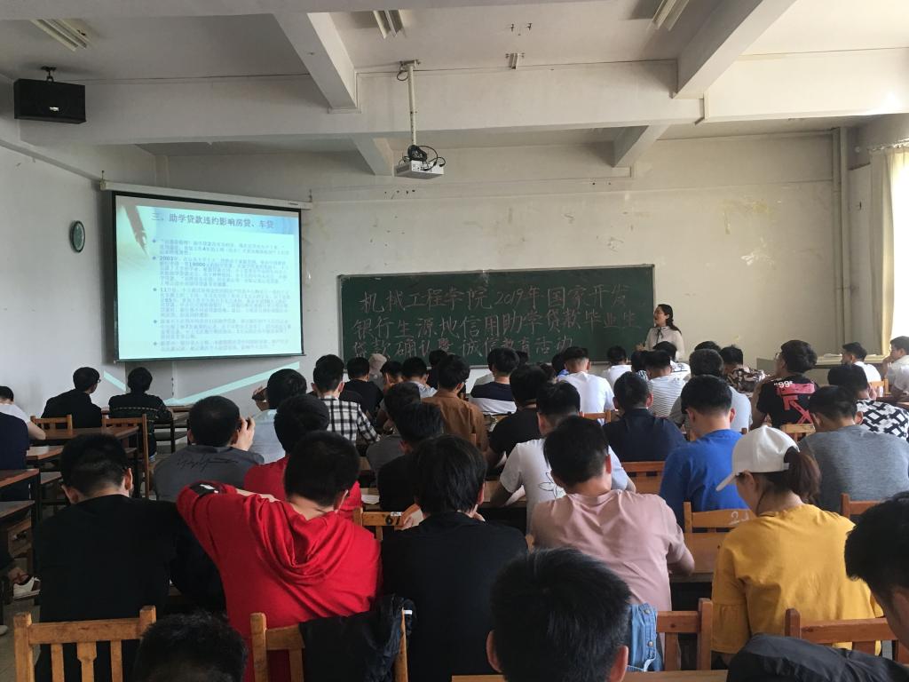 4月22日下午,beat365正版在腾飞楼C座401室举行了2019年国家开发银行生源地信用助学贷款毕业员工贷款确认暨诚信教育活动。会议由学院负责资助工作的老师主持,全体贷款毕业生参加了会议。
