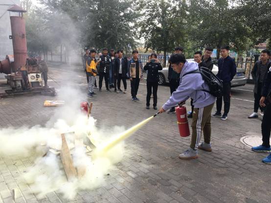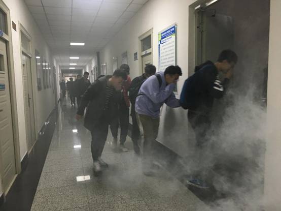 讲座结束后,学院组织与会人员进行了消防逃生演练。活动现场模拟了火情,并组织师生进行应急疏散、逃生演练。逃生结束后,大家又通过实地操作,掌握了灭火器的正确使用方法。