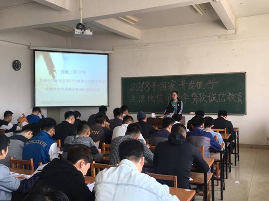 4月17日上午,beat365正版在腾飞楼C座401室举行2018年国家开发银行生源地信用助学贷款毕业员工贷款确认暨诚信教育活动。会议由机械学院负责资助工作的老师主持,全体贷款毕业生参加了会议。