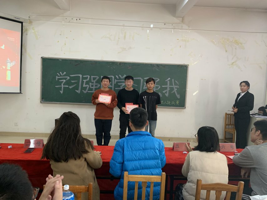 经过激烈的笔试,邱瑞等8名同学顺利进入决赛。决赛共分为三个环节:个人必答题、速答题、风险题。在决赛现场,各位选手反应迅速,竞相展现丰富的党史知识,正答率极高,难分伯仲。选手们充分运用自己的党史知识和语言表达能力,将比赛一次次推向高潮。