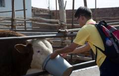 暑期社会实践期间,同学们还体验了果农生活,体验加工肉牛饲料并饲喂肉牛。