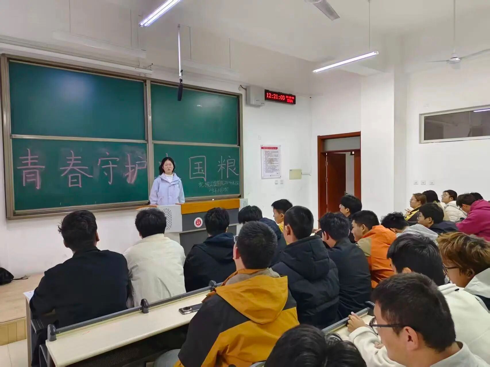 活动伊始,团支书组织学习《粮食安全保障法》,介绍粮食生产现状、全球粮情及安全重要性,重点解读“光盘行动”要求,深化“粮食来之不易”认知,明确粮食安全“国之大者”定位与大食物观意义,引导强化思想与行动自觉,推动护粮责任内化于心、外化于行。