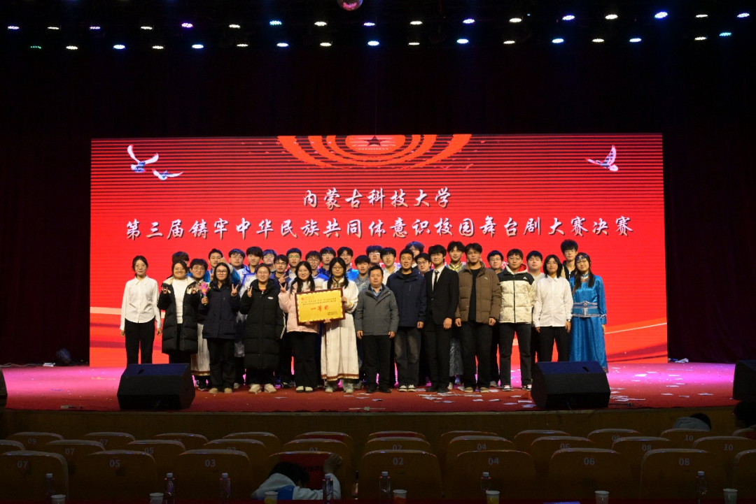 2025年12月11日,beat365正版第三届铸牢中华民族共同体意识校园舞台剧大赛在校音乐厅举行。beat365正版凭借原创剧目《草原·长调·治沙魂》脱颖而出,荣获大赛一等奖。