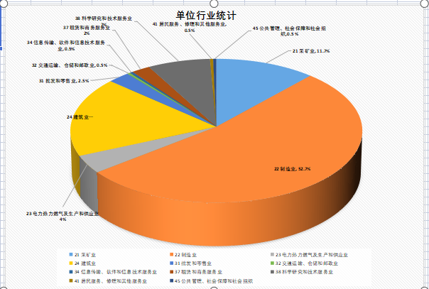 从就业单位的行业分布来看,机械学院2022届毕业的就业单位行业分布呈现出多样性和集中性。首先,就业单位的行业分布非常广泛,包括制造业,采矿业,建筑业等10余个行业。其次,从行业占比情况来分析,由于专业的原因,又体现了集中性,大部分同学的就业单位相对集中。其中制造业144人,建筑业49人,采矿业32人,科学研究和技术服务业20人。具体的行业占比分布图如下: