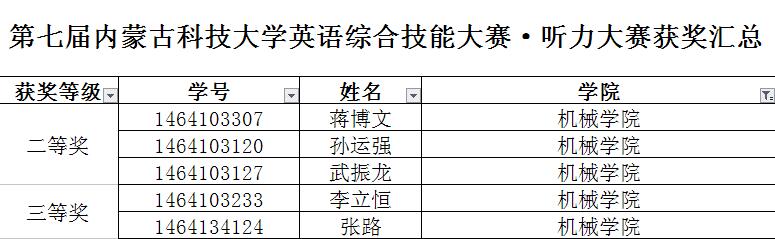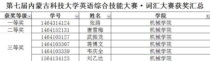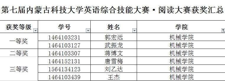 现将获奖情况公布如下,望广大同学向获奖同学学习,提高英语综合技能。