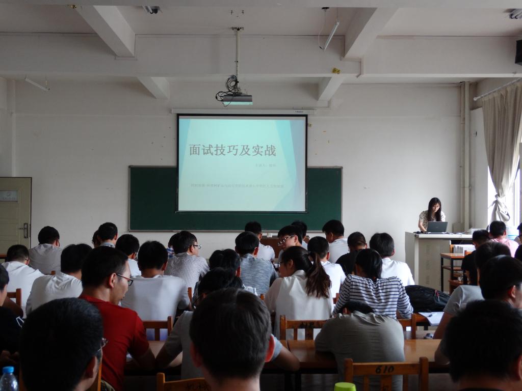 讲座围绕面试前、面试中和面试后三个阶段的注意事项展开,详细介绍了成功简历的要素、如何正确看待面试以及求职技术技巧等内容,生动活泼,易于掌握且简单实用,令同学们受益匪浅。