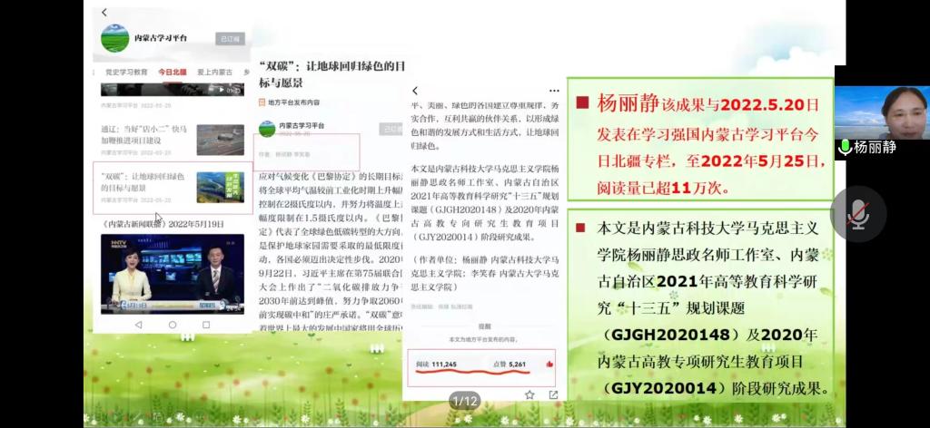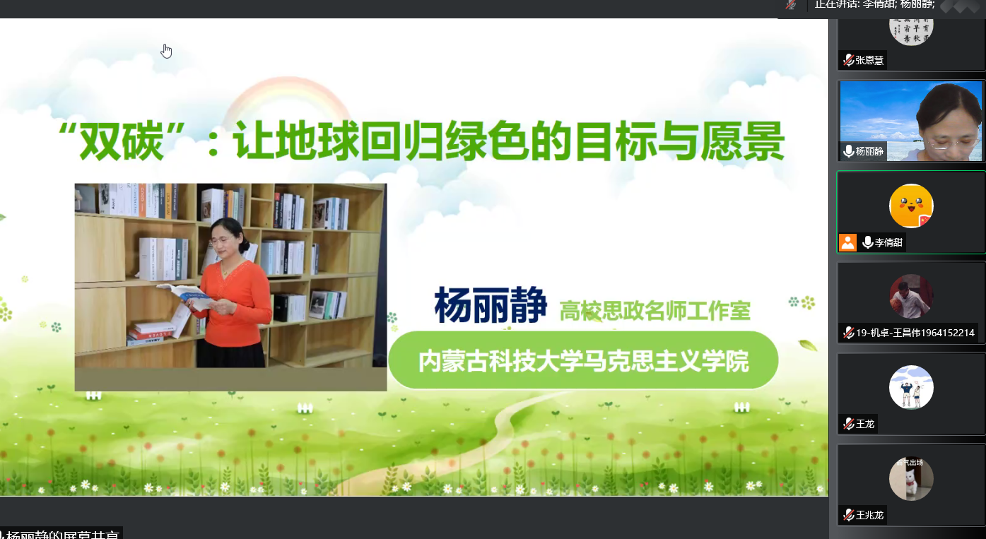 8月31日上午,公司党委邀请学校新时代讲习团成员马克思主义学院杨丽静副教授为全院教职工、全体党员开展线上理论宣讲,宣讲主题为《双碳:让地球回归绿色的目标和愿景”》。