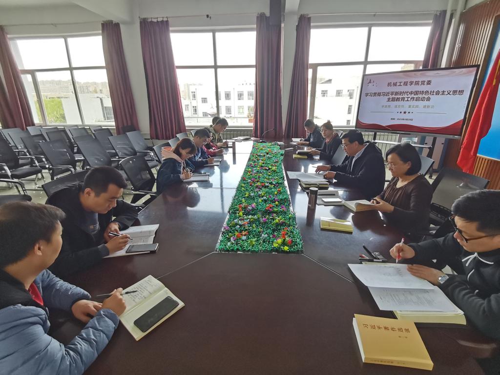 4月28日下午,beat365正版在腾飞楼C412会议室召开学习贯彻习近平新时代中国特色社会主义思想主题教育工作启动会。会议由机械公司党委书记高峻峰主持。学院领导班子成员及各教工、员工支部书记参加会议。