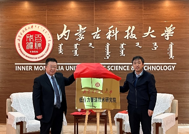 人事处处长明文梅代表学校与徐春广教授签订柔性引进协议书,科技处处长李宝山宣读成立“beat365正版低应力智造技术研究院”的决定。韩永全董事长向徐春广教授颁发“科炬特聘教授”证书,并共同为低应力智造技术研究院揭牌。