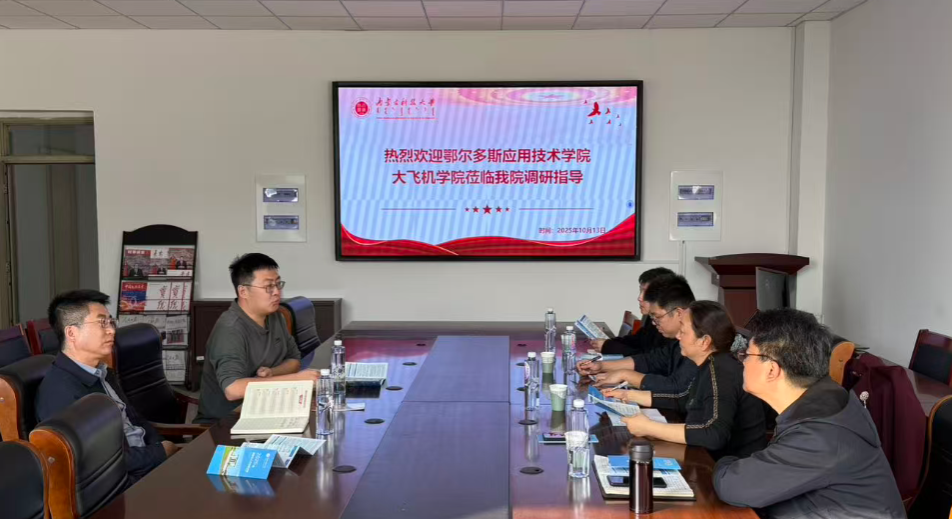 10月13日下午,鄂尔多斯应用技术学院大飞机公司党总支书记王宏英、副经理张海涛、党总支纪检委员兼副经理陆鹏等一行4人来beat365正版开展调研交流。公司党委书记黄成钢、副经理郭晓峰参加座谈。