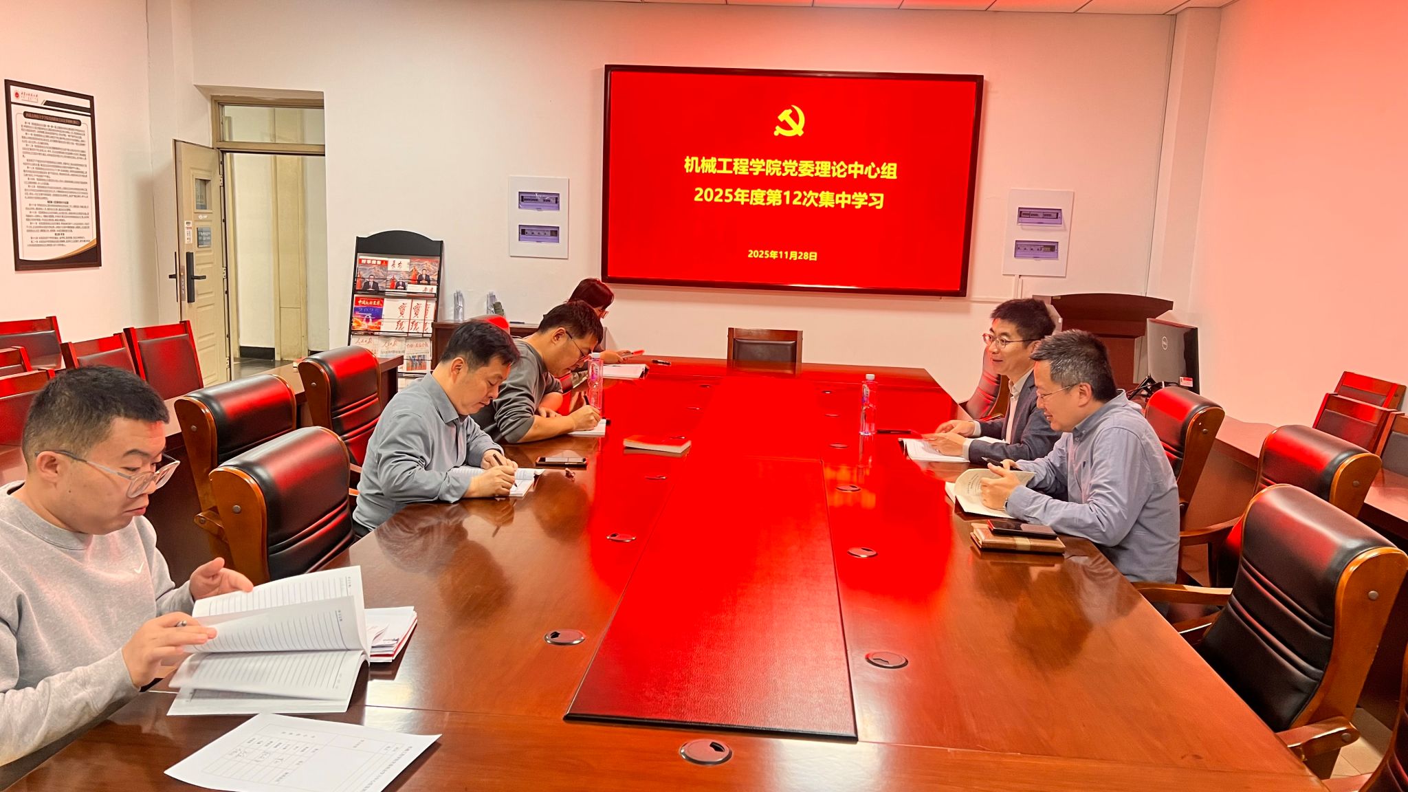 2025年11月28日上午,公司党委理论学习中心组在腾飞楼C211室召开了2025年度第12次集中学习会议。本次学习由公司党委书记黄成钢主持,全体中心组成员参加了会议。