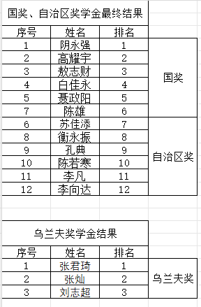 根据《beat365正版国家奖学金实施办法》、《beat365正版乌兰夫奖学金评选办法》,经学院学生工作会议决定,beat365正版2024-2025学年国家奖学金、自治区奖学金、乌兰夫奖学金名单公示如下: