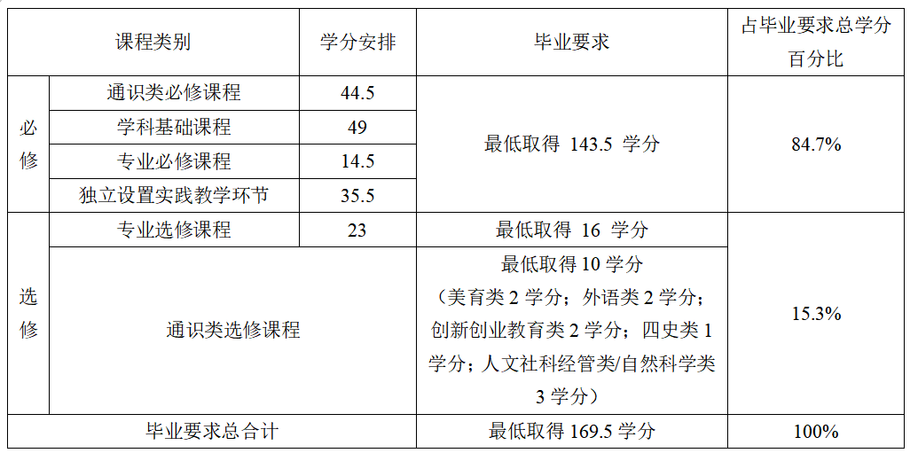 六、教育平台构成、学分安排、毕业学分及学位授予要求